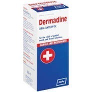 Dermadine oral antiseptic gargle and mouthwash 200ml is an oral antiseptic that helps relieve painful mouth and throat infections. Can also help with a sore throat, inflamed gums and caring for the mouth post-surgery